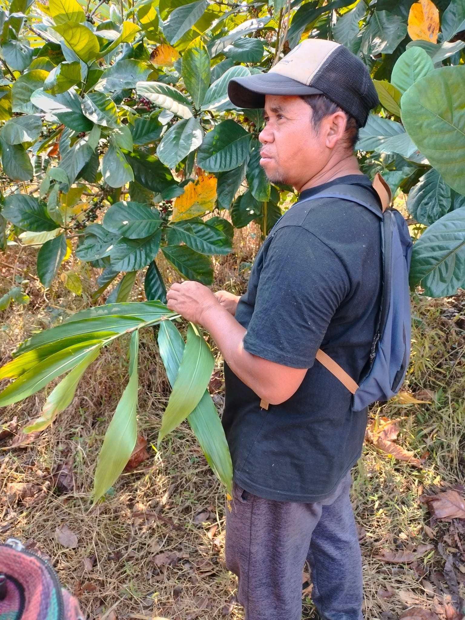 Ensuite, nous avons été voir la plantation de café de Somphone. Il y avait des gens qui récoltaient les grains de café. On les récolte quand ils sont rouges ou orange. Ensuite, il faut les faire sécher. Cultiver le manioc rapporte plus d'argent que le café mais Somphone a décidé de faire une plantation de café car c'est mieux pour la planète car on ne fait de brûlis et on peut garder les arbres sur le champ.