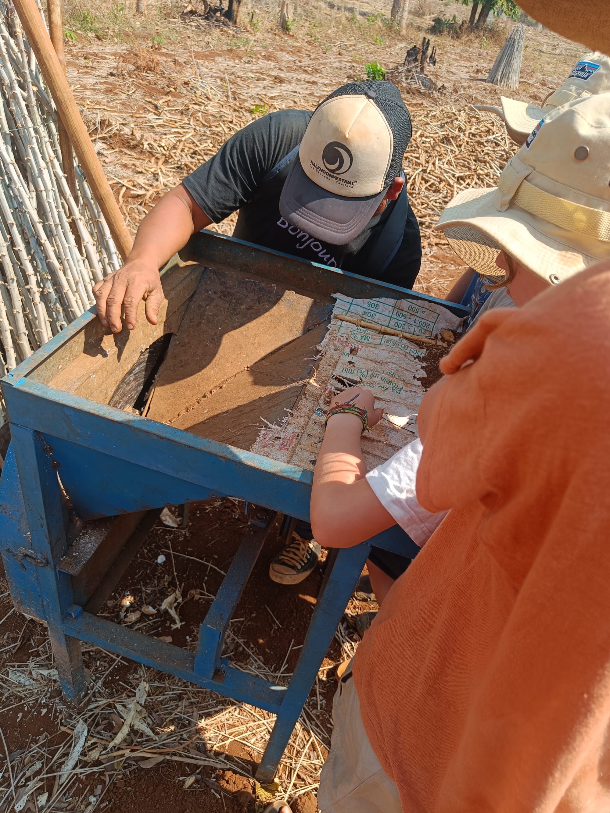 Nous avons passé une nuit chez Somphone. Quand nous sommes arrivés, nous avons été accueillis par des Français qui font du volontariat et ils nous ont montré comment trier les grains de café.
