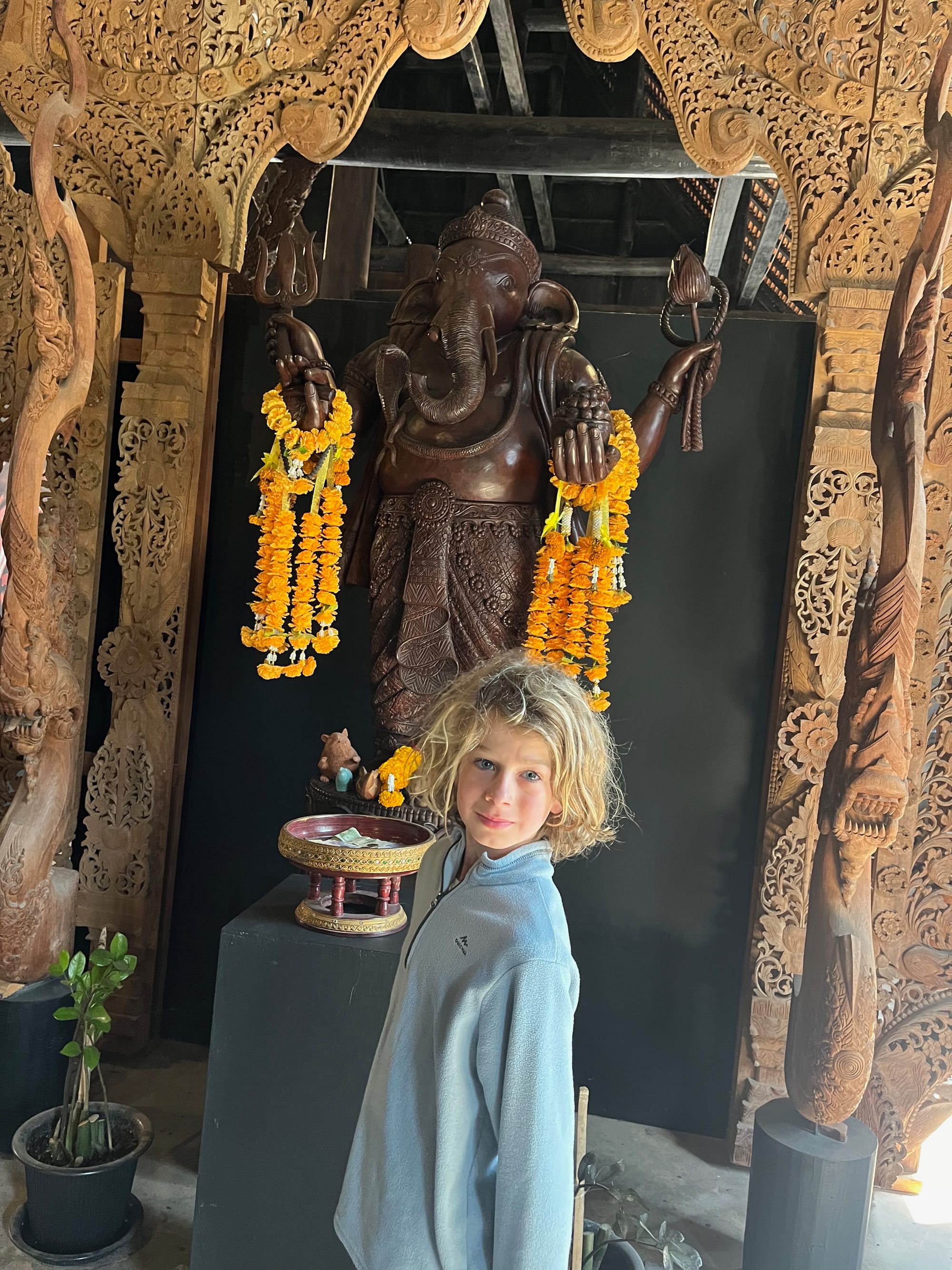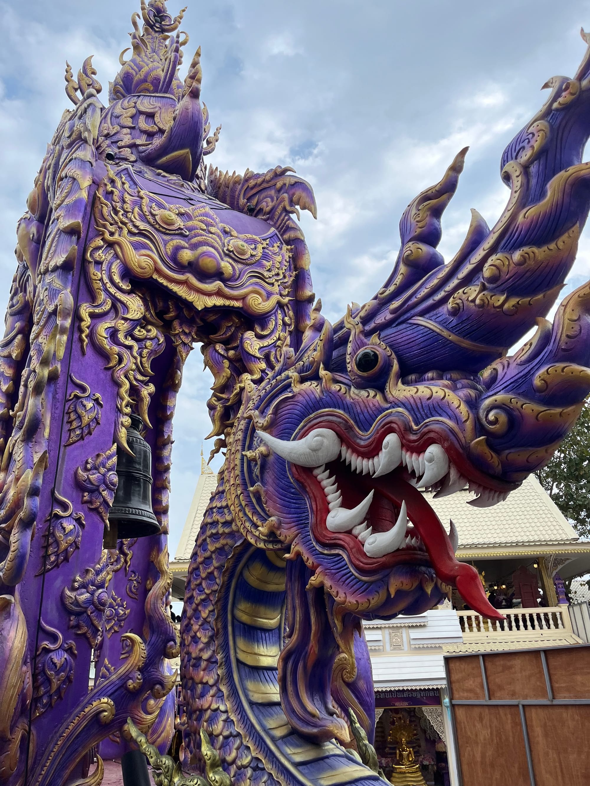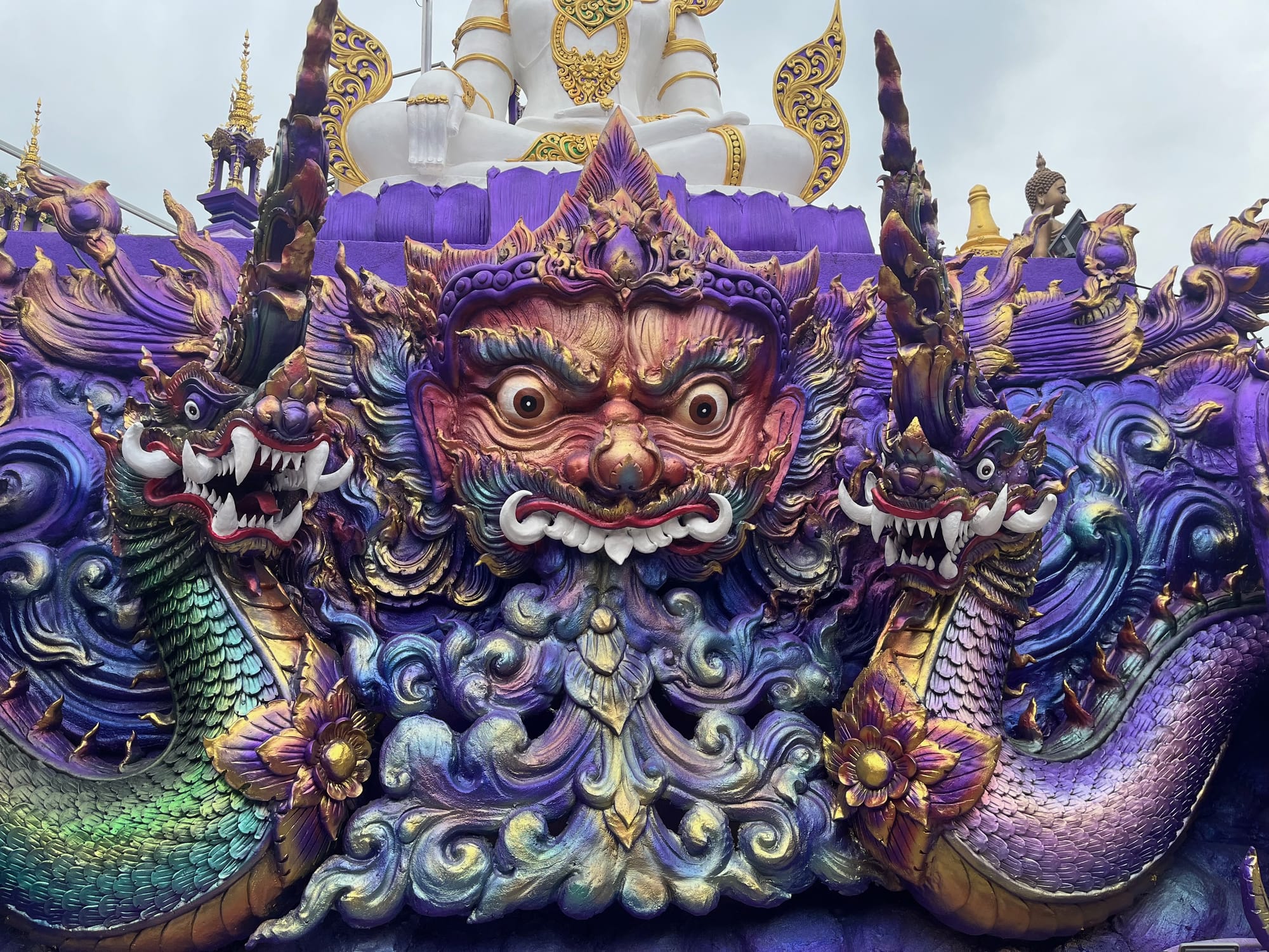 On voulait louer une voiture pour visiter la région du triangle d’or pour nos 2 derniers jours avant de rejoindre le Laos mais plus moyen de trouver une voiture 7 places. Finalement grâce à Nok de BambooNest nous trouvons un van avec chauffeur pour le prix d’une location. Il commence par nous déposer à la black House, une maison musée d’art de Thawan Duchanee.