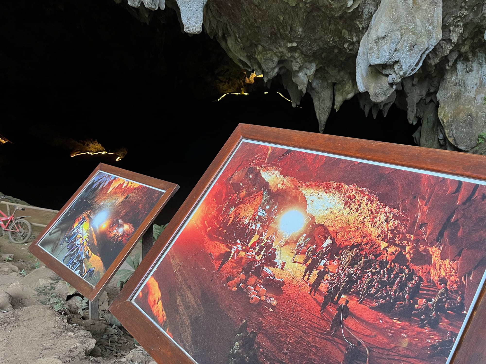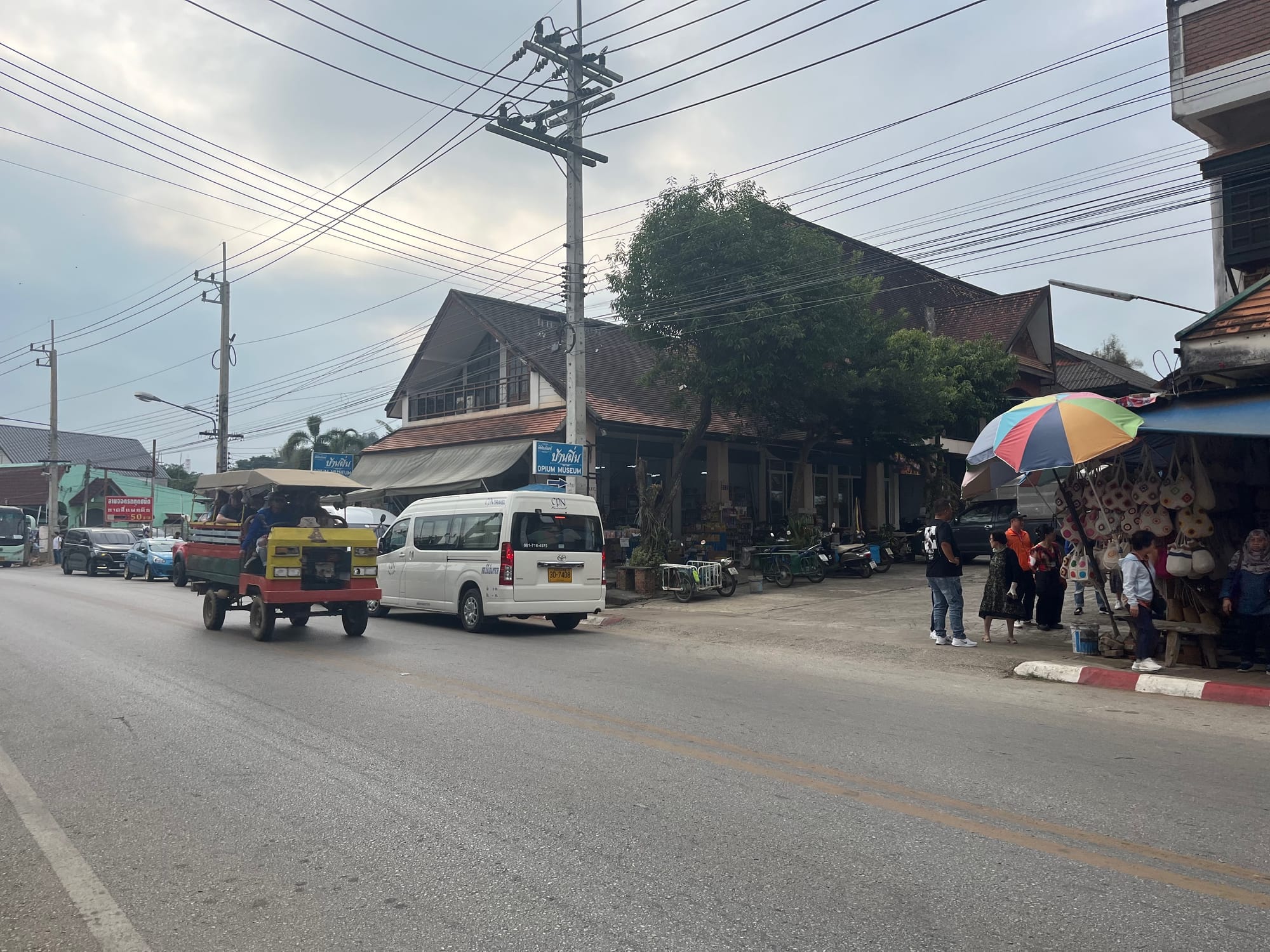 On poursuit dans les montagnes où la route borde la frontière du Myanmar. On dort dans un petit village juste derrière la montagne de la dame couchée qui abrite la grotte où 13 enfants sont restés bloqués pendant 20 jours en 2018.